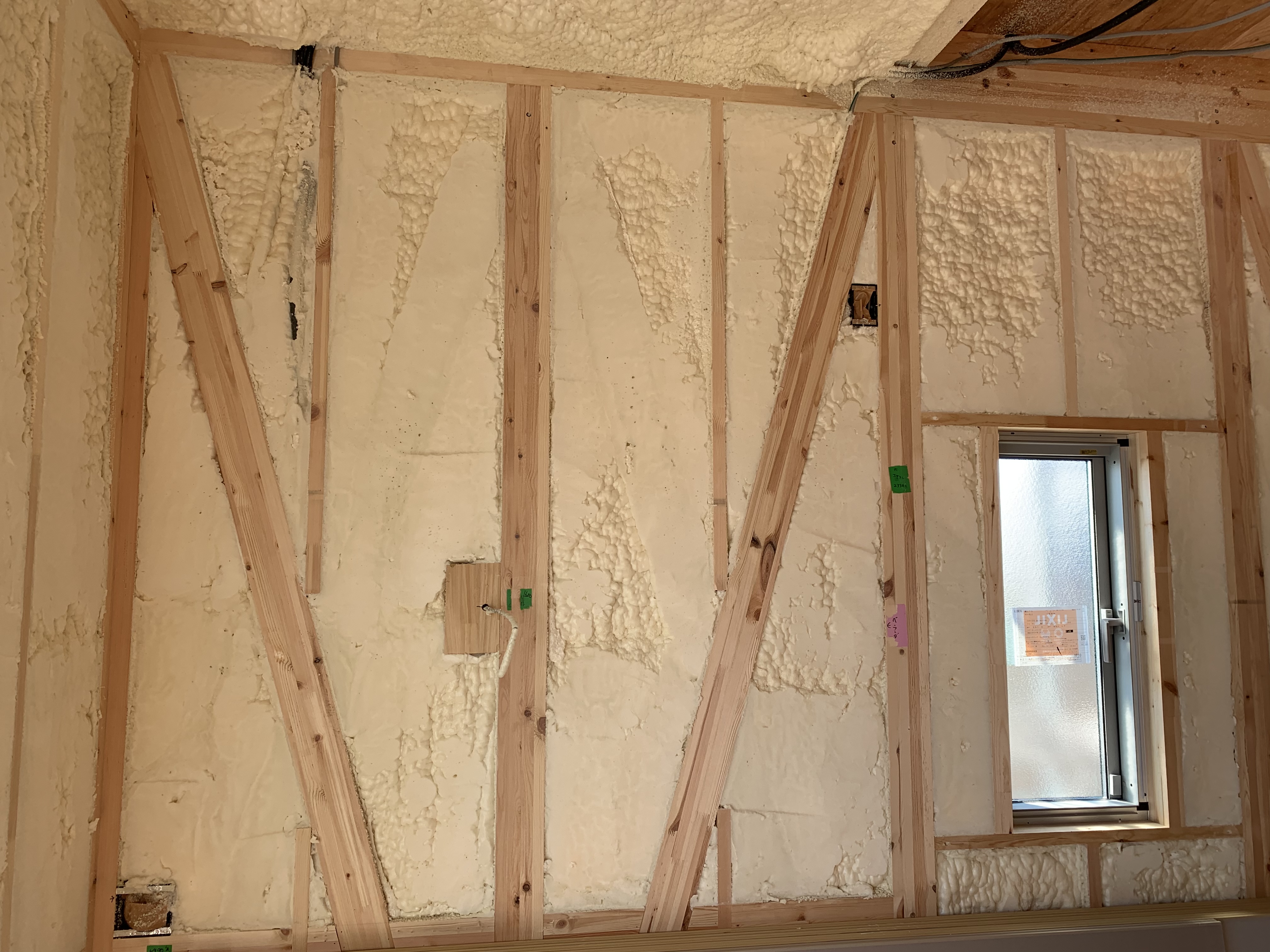 壁は75ミリ以上 屋根は100ミリ以上吹き付けしています
