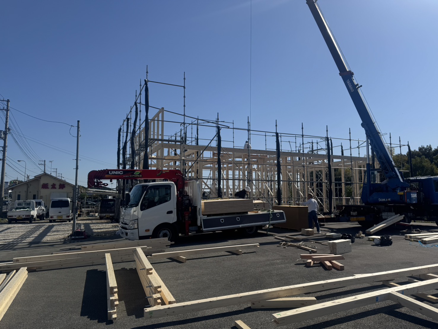 12日には 事務所及びショールームの上棟予定です